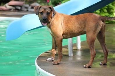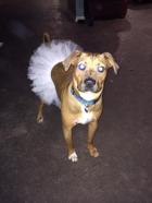 10/19- Dexter is a young male Bedlington Terrier/ Labrador Retriever mix (7-8 mo old) who was found in a motel parking lot limping and hungry.
