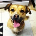 Tansy is a 2-3 year old Heeler/Boxer X with adorable white boots and a slight underbite! She was surrendered by a family who called her the "neighborhood dog." She weighs 40 lbs, is healthy, and is a major cuddle-bug.